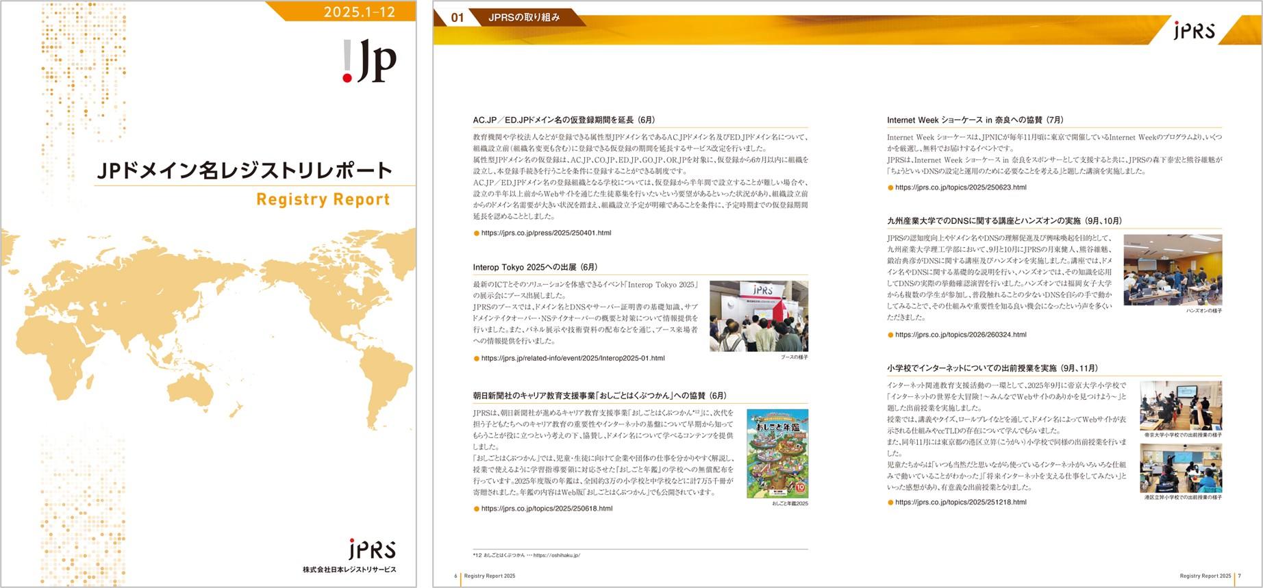 株式会社日本レジストリサービス(以下JPRS、本社:東京都千代田区、代表取締役社長 東田幸樹)は、本日、JPドメイン名の登録管理業務に関する2025年の年次報告書、『JPドメイン名レジストリレポート2025』を公開しました。